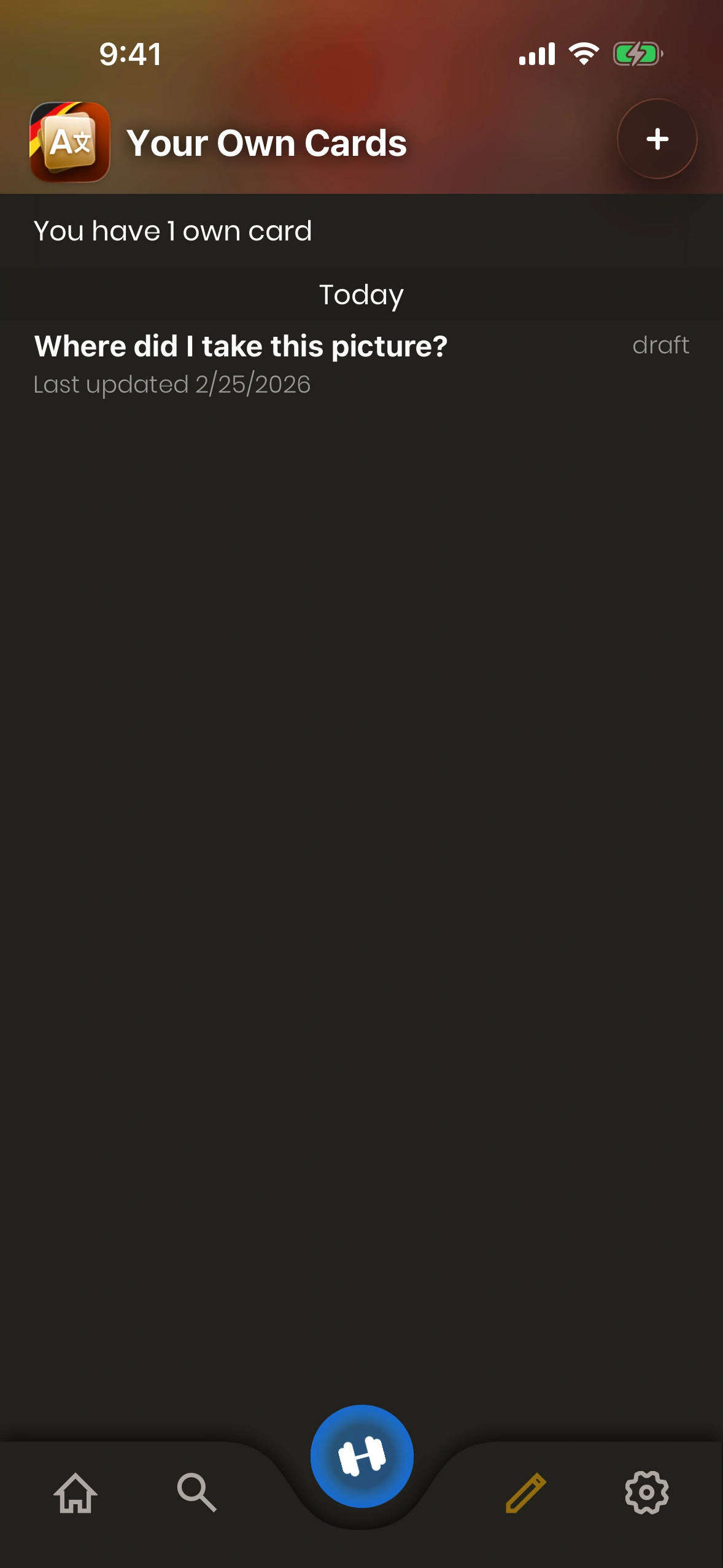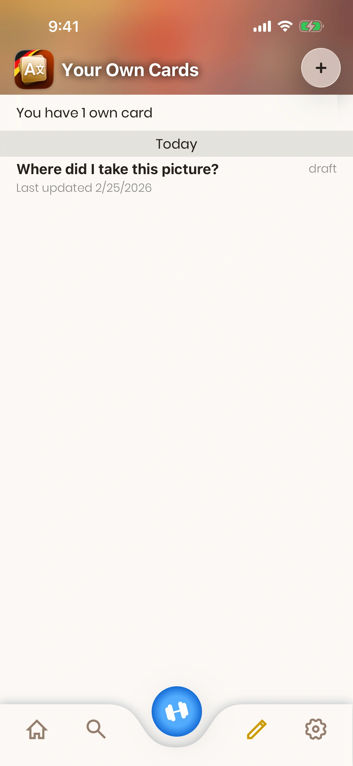 The Own Cards Overview Screen is shown when you tap the pencil symbol in the tab bar at the bottom (1.):