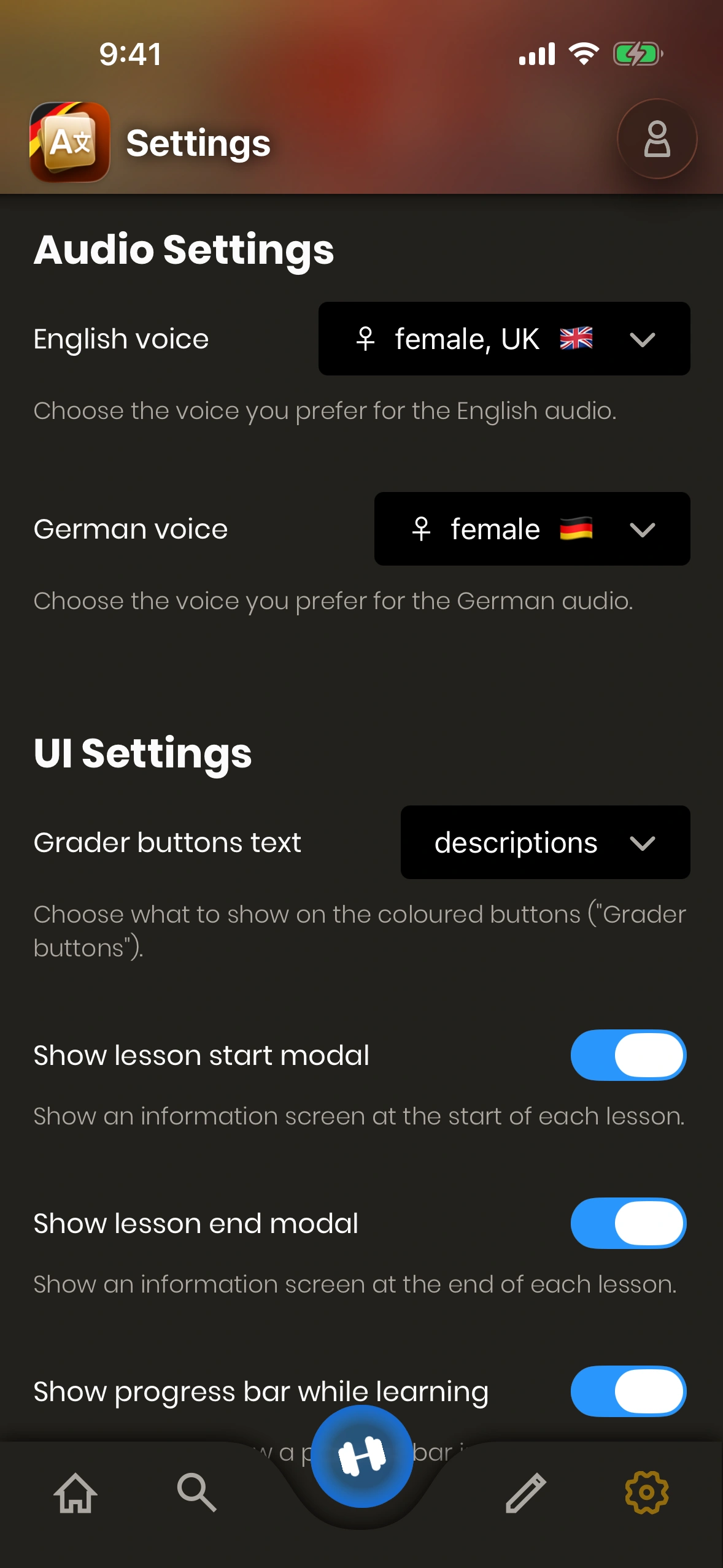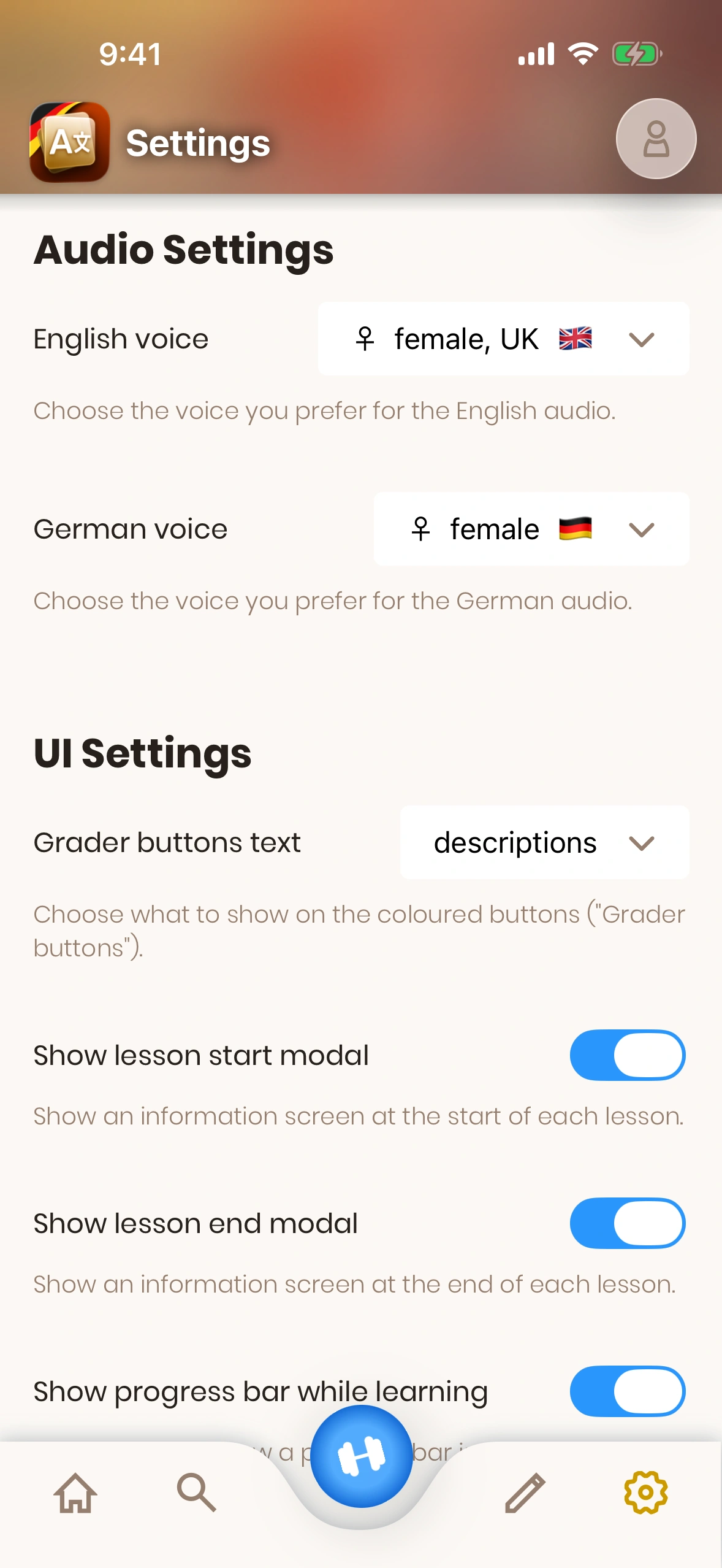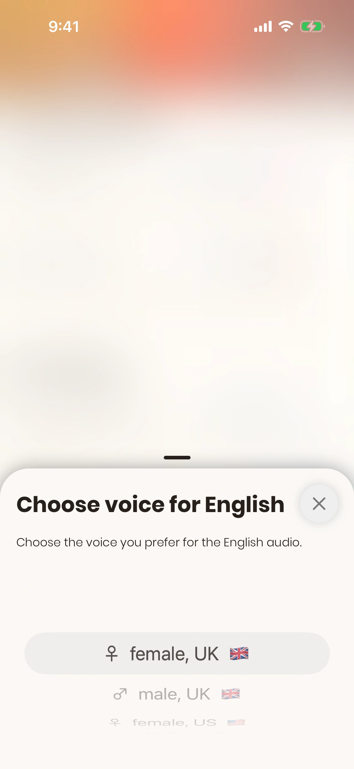 All languages are available in a female and a male voice. In addition, English can be chosen in a British or an American accent.