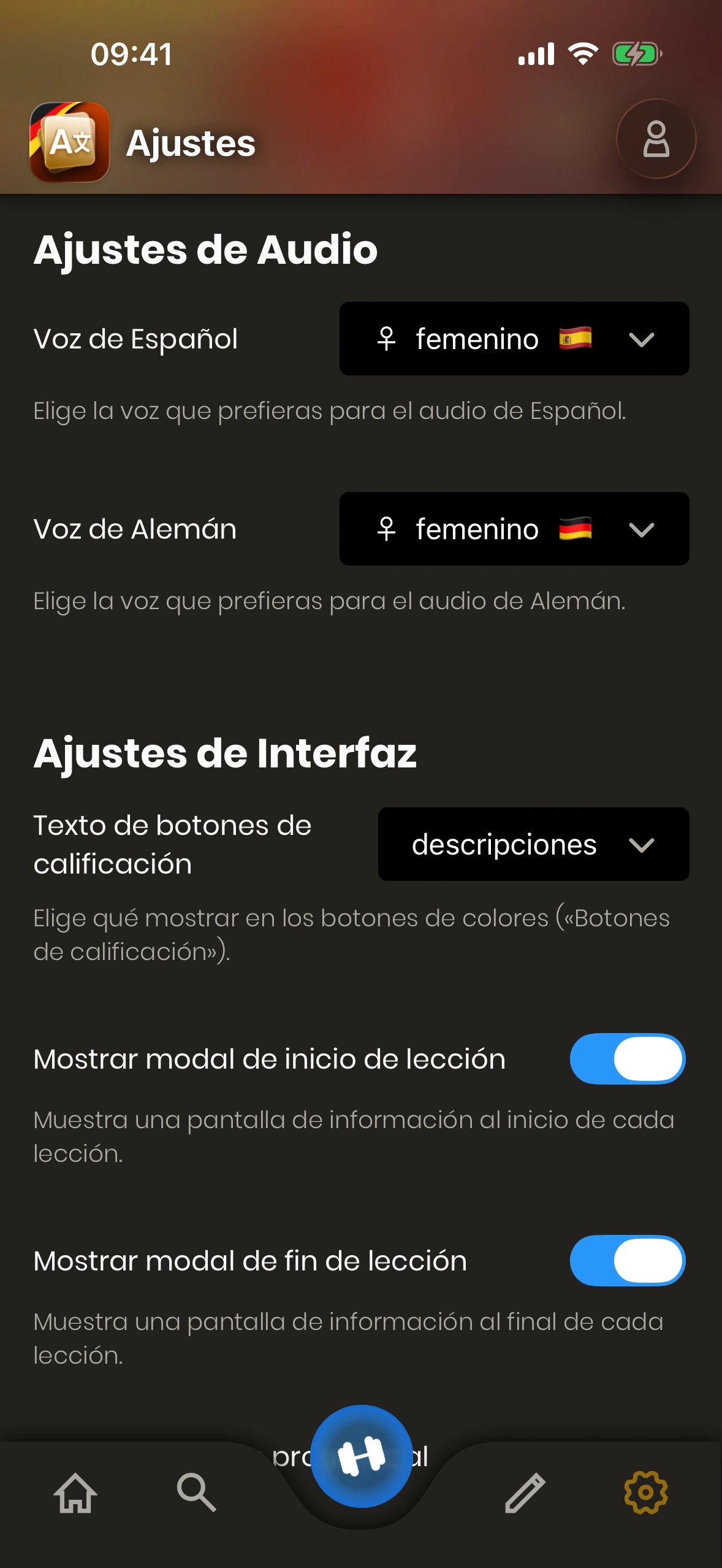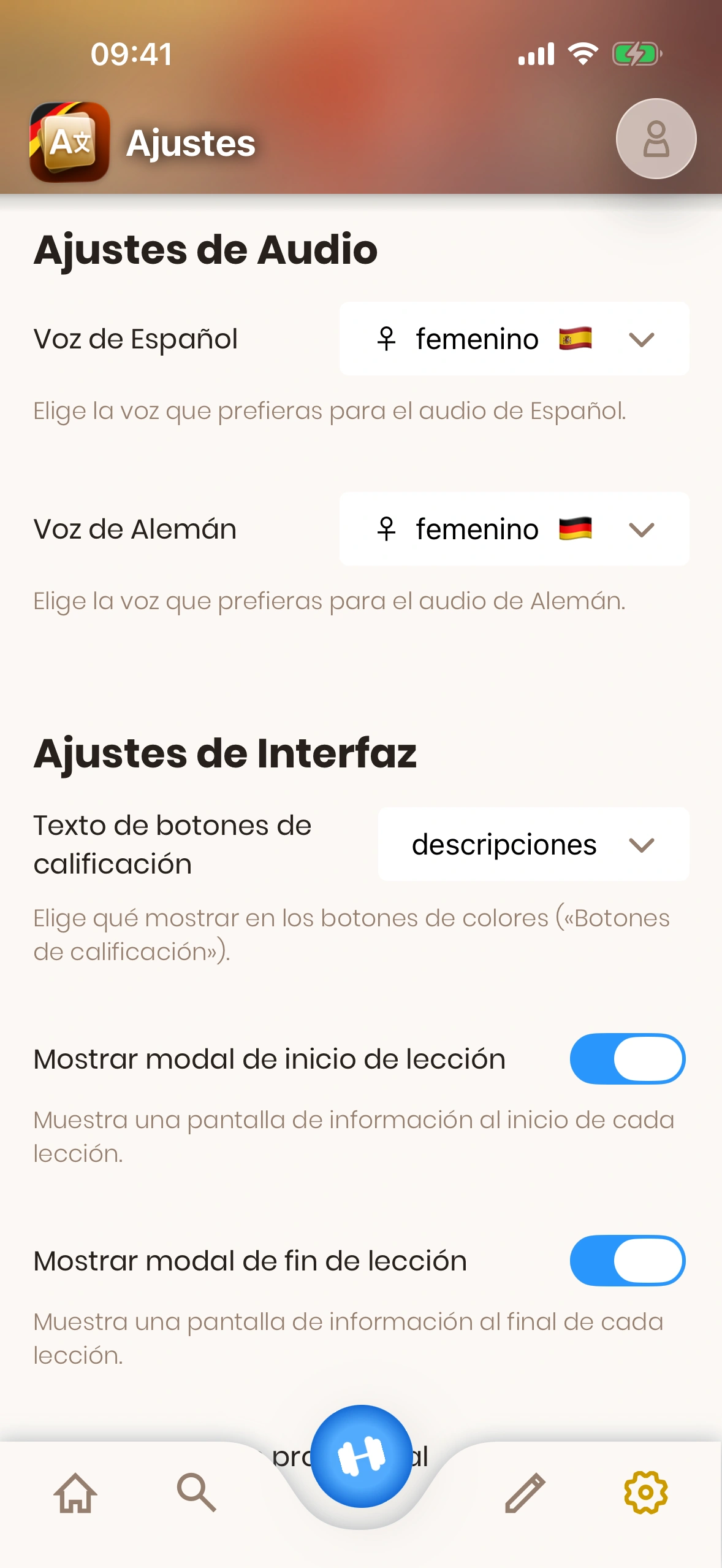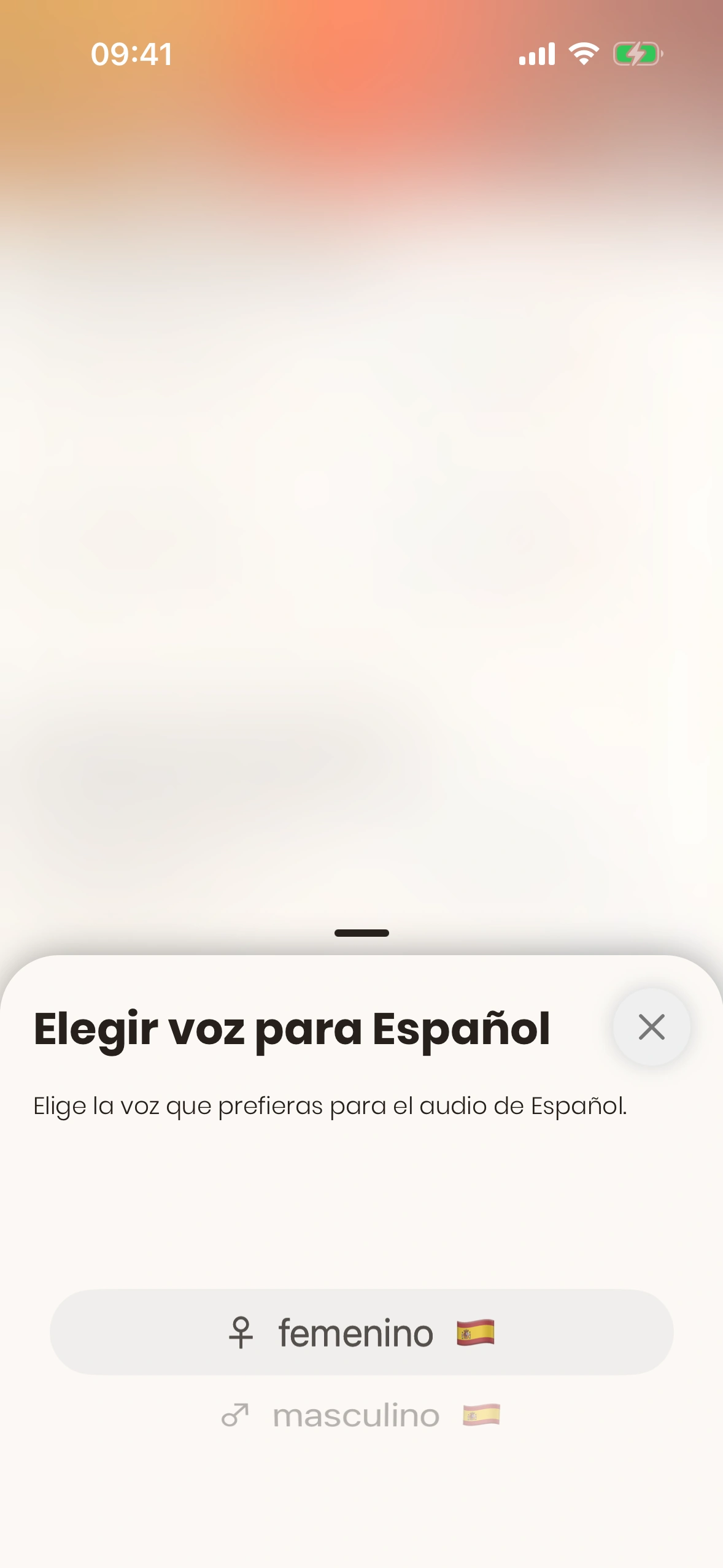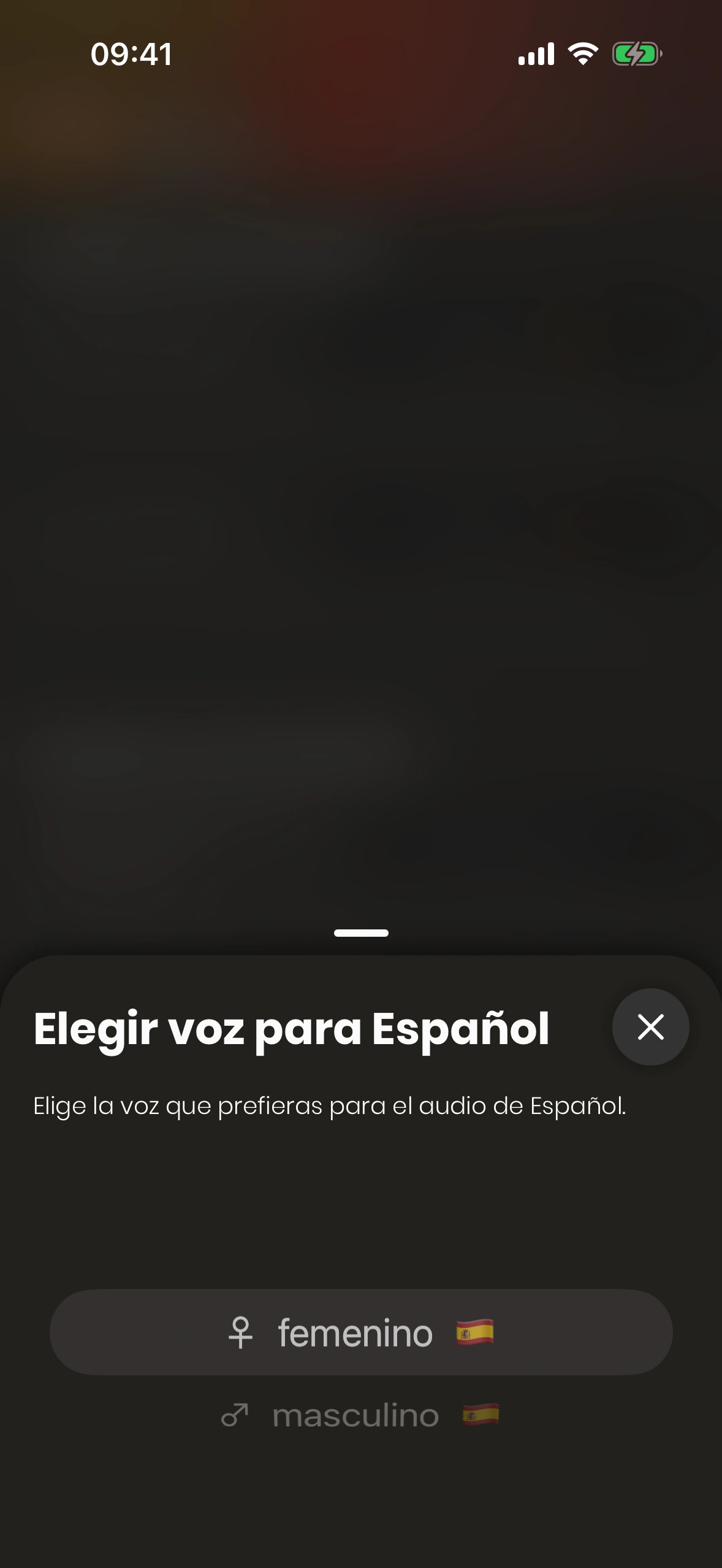 Todos los idiomas están disponibles con voz femenina y masculina. El inglés también se ofrece en dialecto británico y americano.