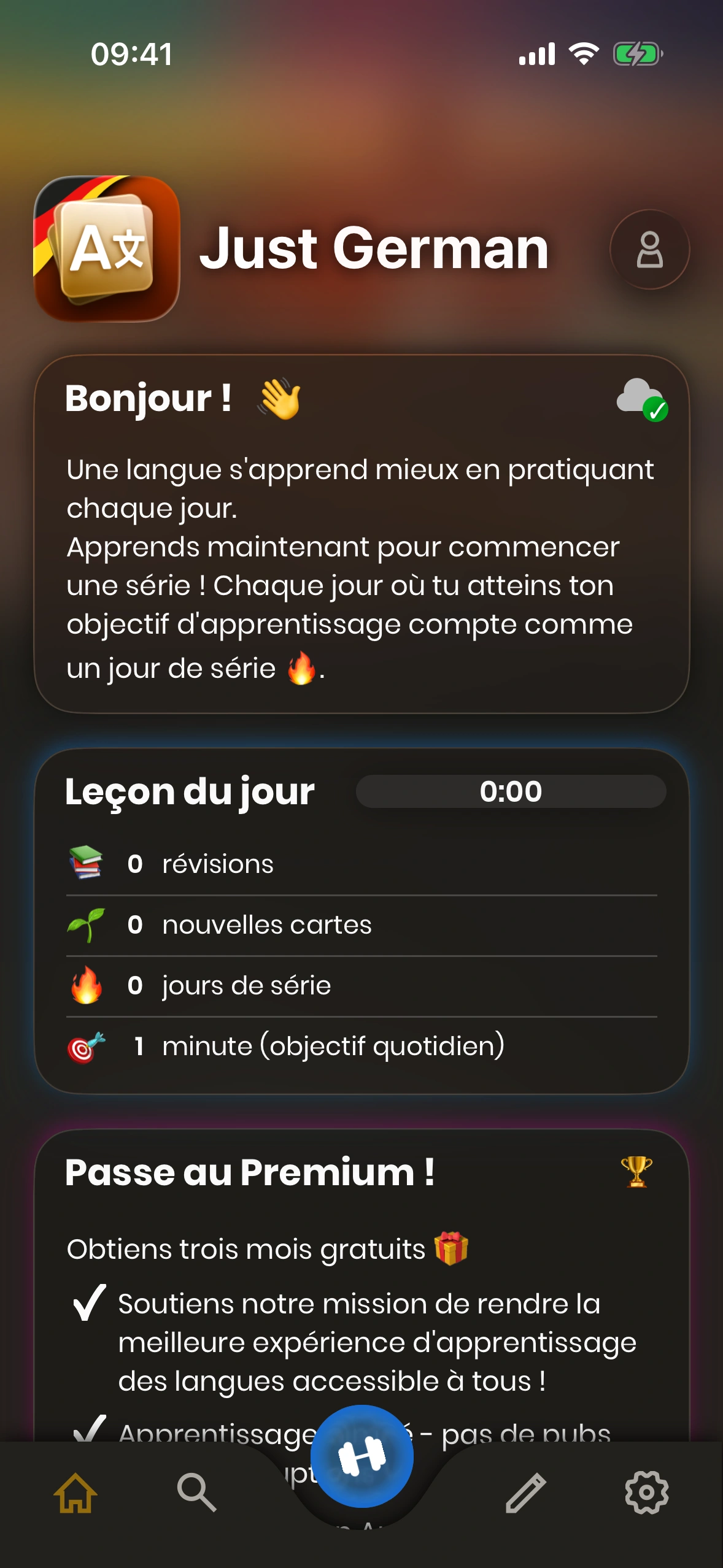 Il n'y a aucune obligation de te connecter ou de créer un compte. Après avoir terminé le tutoriel, presque toutes les fonctionnalités de l'application sont disponibles. Il y a cependant quelques limitations :