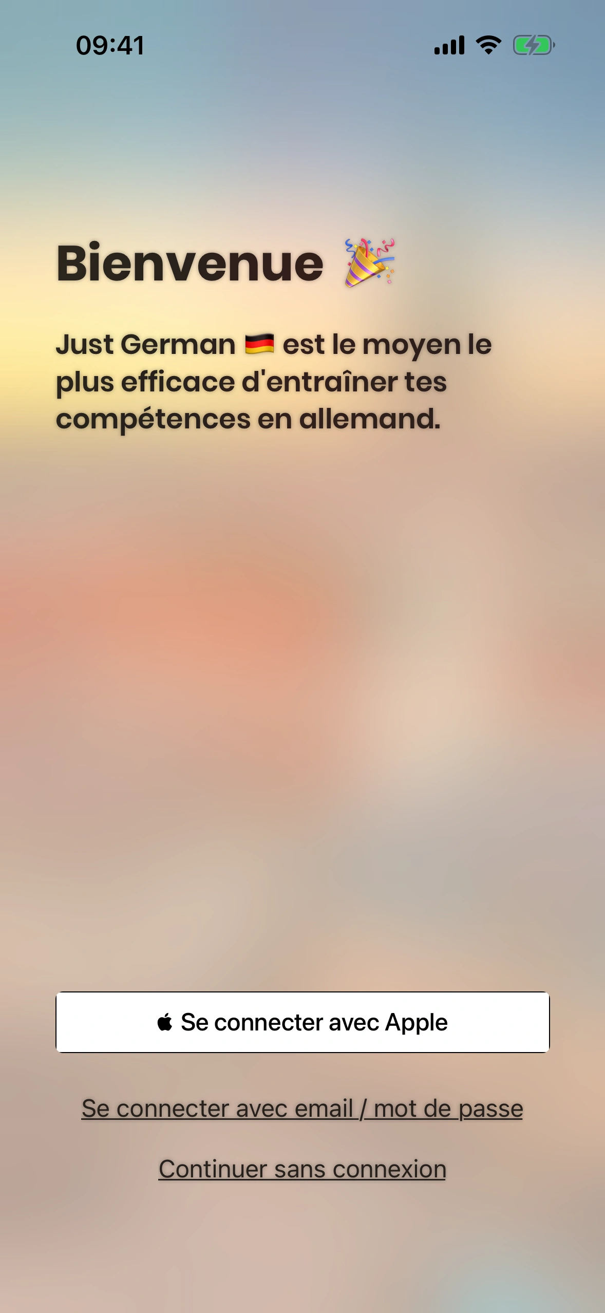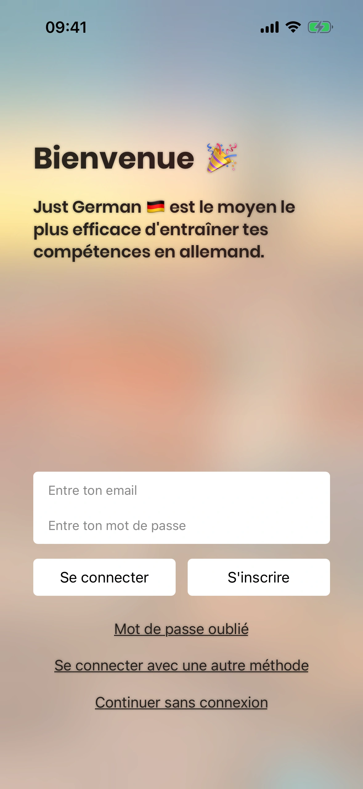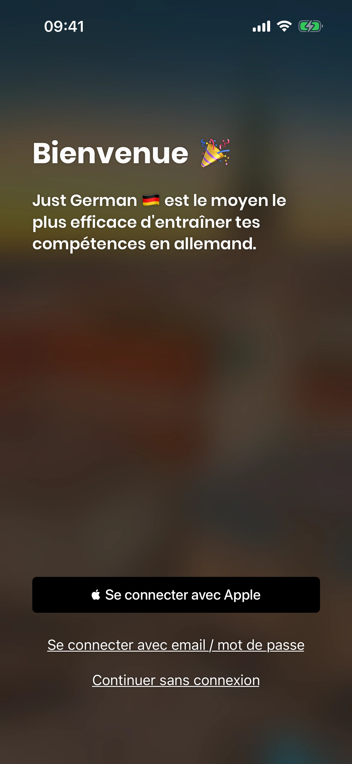 Actuellement, Just German propose deux façons de te connecter :