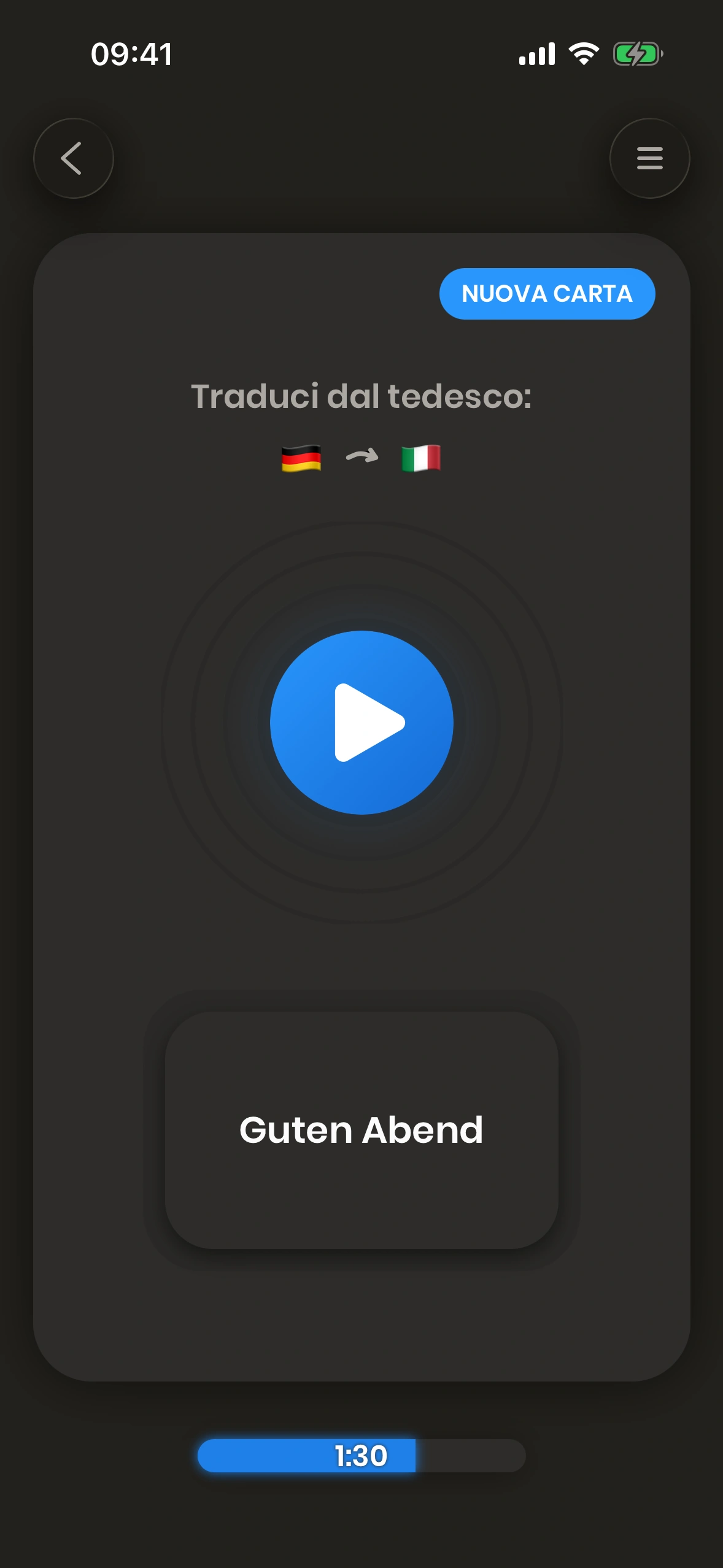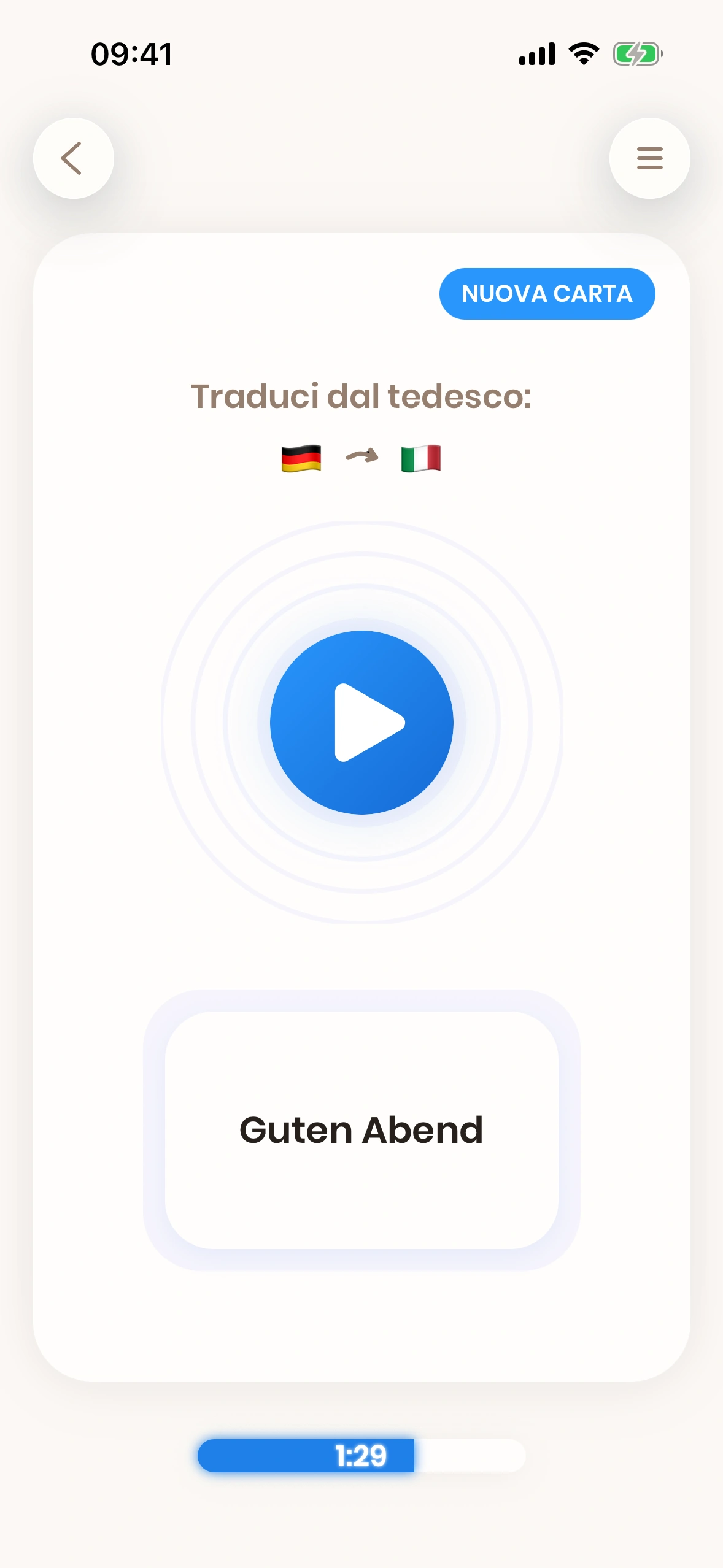 La barra di avanzamento mostra il tempo che hai già dedicato all'apprendimento oggi, nonché quanto tempo devi ancora studiare per raggiungere il tuo obiettivo quotidiano.