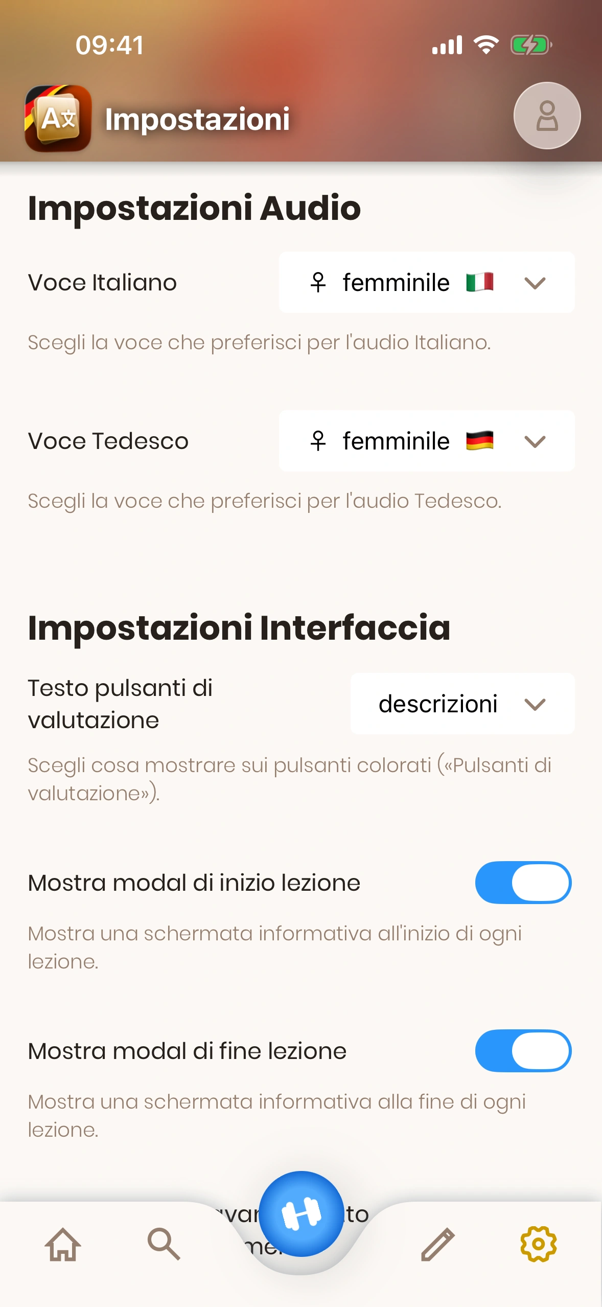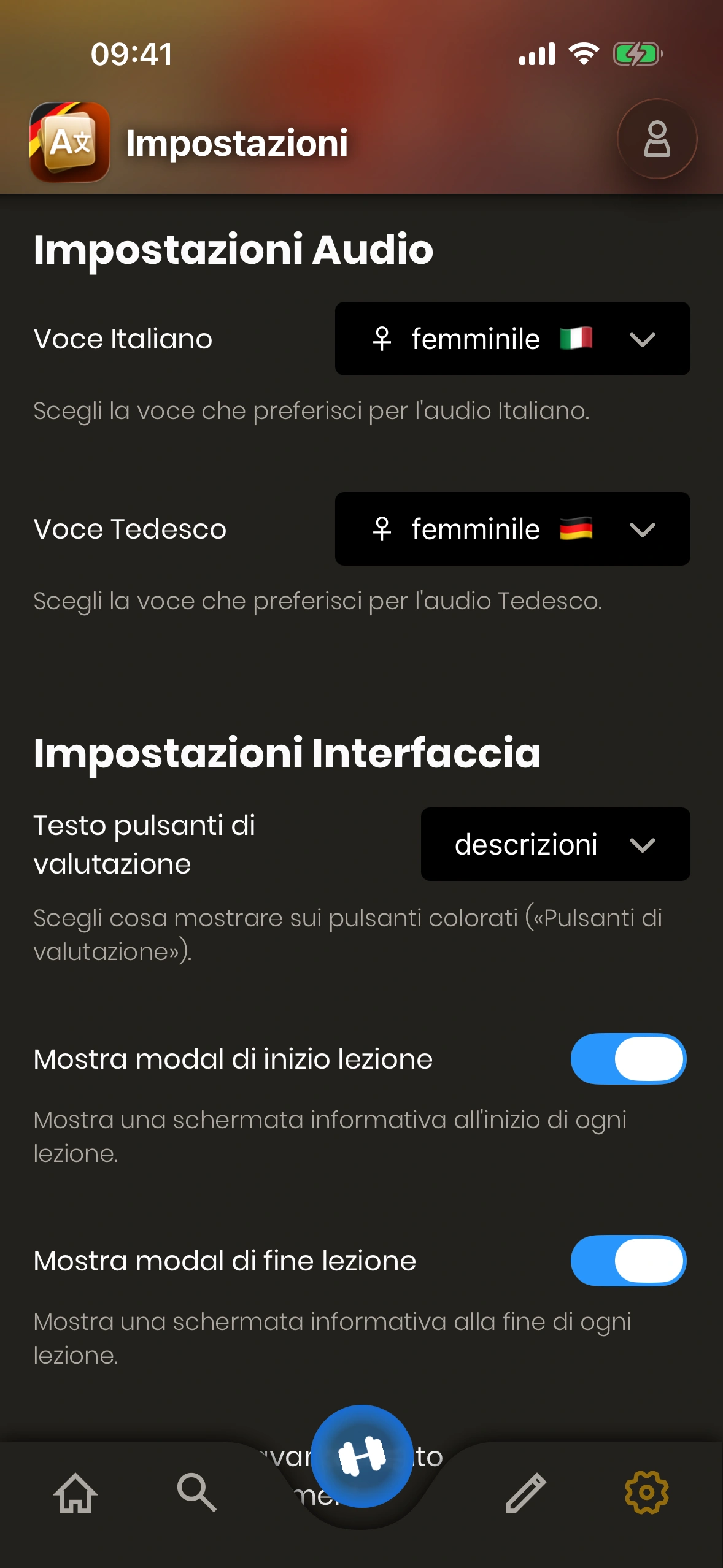 Per Tedesco e Italiano, puoi scegliere tra voci diverse.